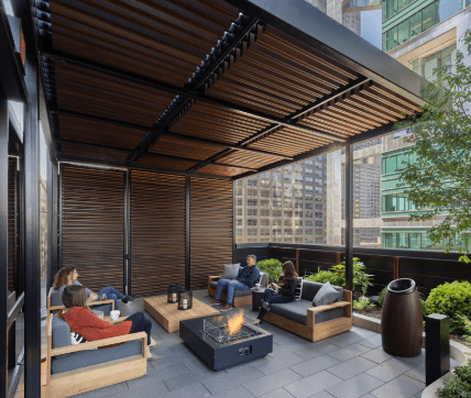 Stream felt 500 West Madison needed a straightforward, concise, and bold rebranding campaign—one that would stand out against immense commuter volume and appeal to a diverse tenant base. The lobby, with its high ceilings and open views, was not the focal point it needed to be. Management and security offices were moved from the reception area, which was updated to provide an inviting, yet grand first impression. The $10 million renovation of the 3rd-floor office lobby included an expanded first-class lounge with a staffed bar, a landscaped outdoor terrace, and a new conference center. Stream implemented a long-term spec suite program to differentiate the building from its competitors by hiring a premier, tenant-based, and hospitality-focused architect in Chicago. Their unique designs provided a hotel feel and elevated the space, making it less about convenience and more about an elevated lifestyle. In total, the team constructed and leased almost 250,000 square feet of spec suites and converted interior storage space into shared tenant lounges to help further differentiate the offerings from the competition.